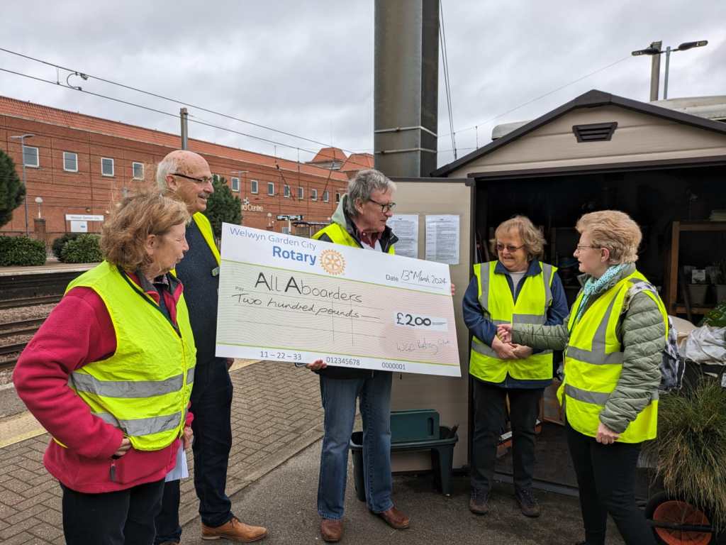 WGC Rotary presented a £200 cheque as part of their ongoing support for the All Aboarders. Their donations go towards maintenance of the raised beds on platforms 1/2.