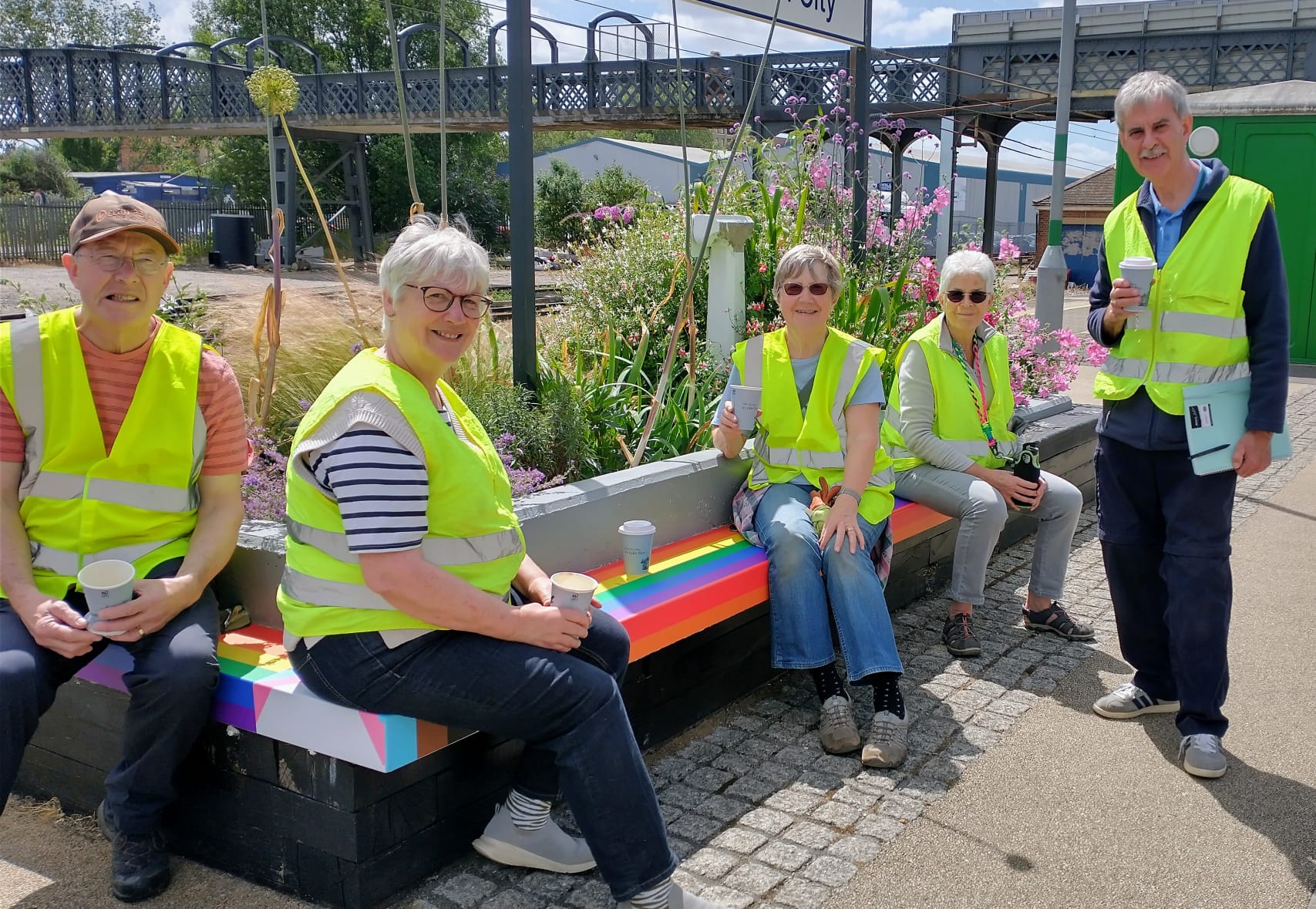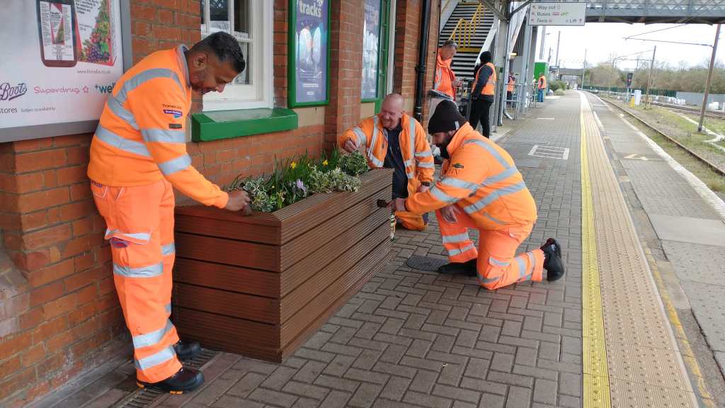 Makeover Day arrived, a nearly annual tradition now where the All Aboarders partner with GTR, Network Rail, local councillors, rotary and other supporters to spruce up the station. This year we also welcomed Siemens Mobility staff to help with the installation of the sensory bed. The new bed was designed and supplied by our friends at Garden on a Roll and gave instant impact. Many hands make a big impression on one of these days with lots of other jobs being completed including the planting up of 5 new square troughs, treating the existing troughs, painting the sign posts, installing new heritage posters in the waiting rooms & general gardening tasks.