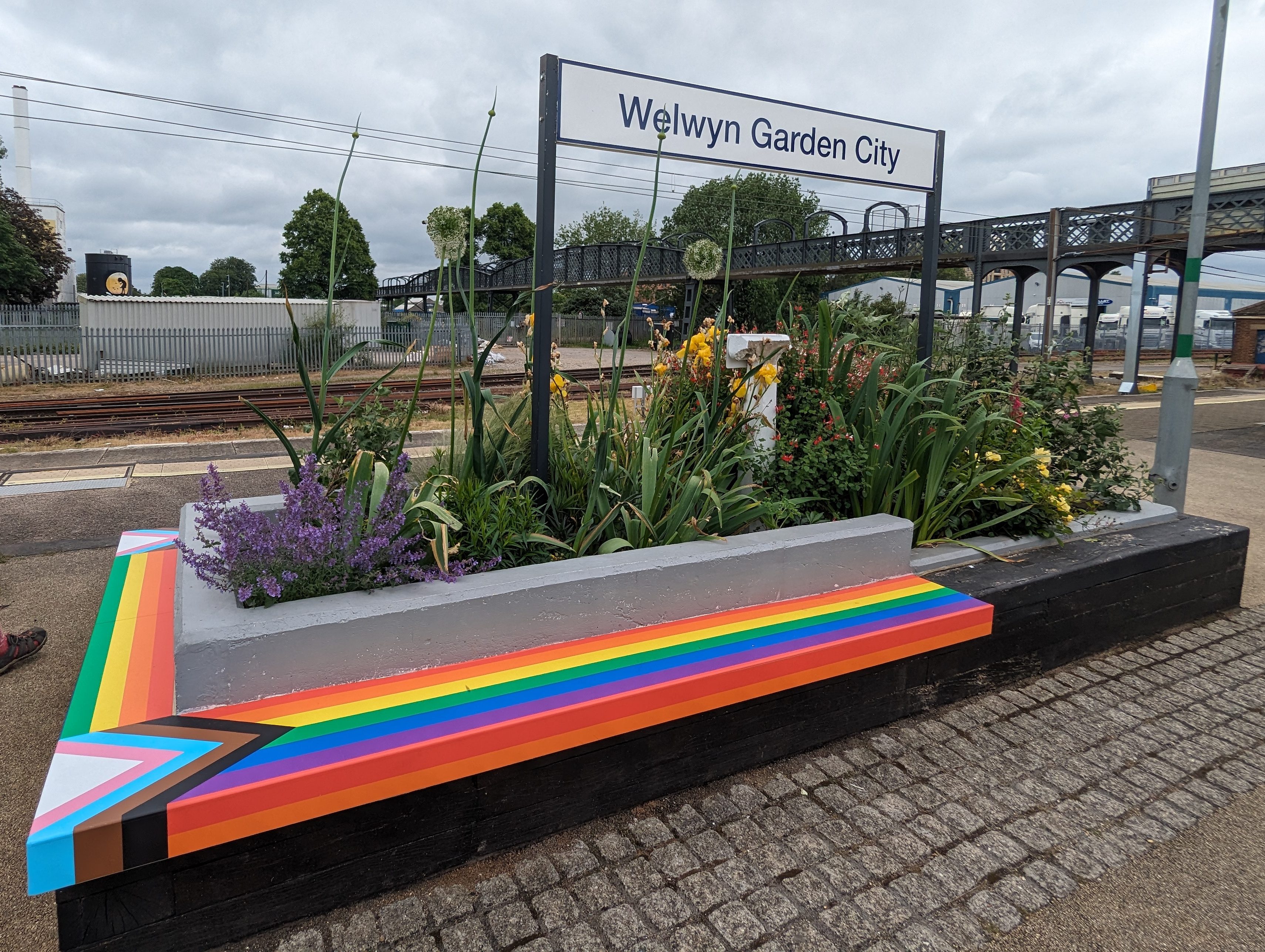 Our Pride bench, originally installed in 2021, had suffered from the effects of the weather. In April the bench was reinvigorated by staff using mental sheeting and vinyl wrap, specially designed to fit the space. We think it looks fab!